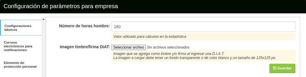 Menú SFTI → Ícono de usuario → Configuración de empresa → Configuraciones básicas