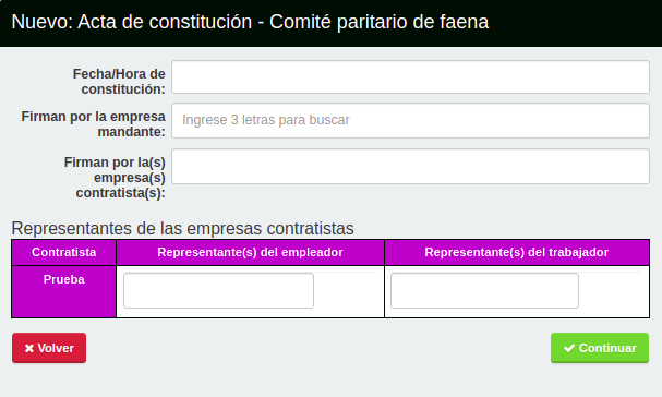 Ya creado el registro procederá a presionar el botón de actas de constitución.