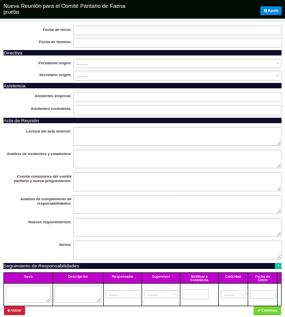 Al agregar una nueva reunión cargará el siguiente formulario: