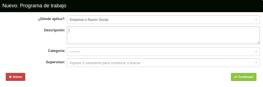 Una vez creado el programa de trabajo solicitará indicar una descripción del mismo, entendiéndose esto, por el nombre con el cual se identificará para todos los efectos dentro de la plataforma