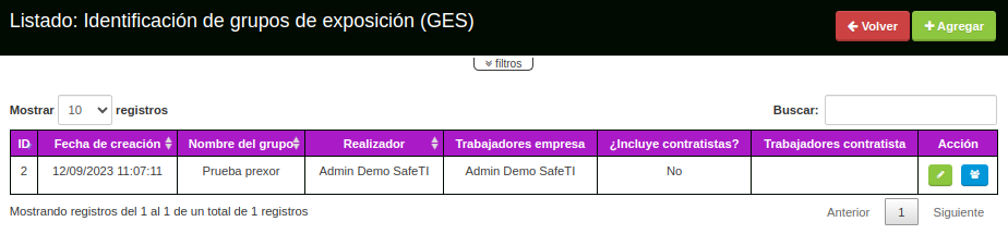 El sistema cargará el listado de todos los trabajadores que haya agregado con el grupo de exposición: