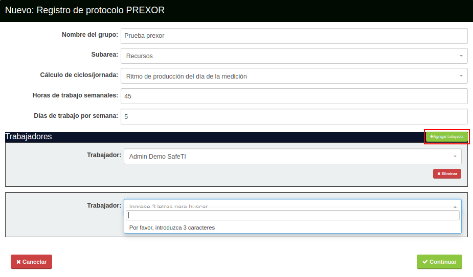Al editar el registro también podrá agregar nuevos trabajadores al grupo.